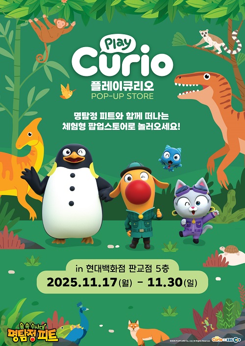이상준 플레이큐리오 대표는 “이번 현대백화점 판교점 팝업스토어는 XR 전시와 AR 학습 콘텐츠를 동시에 즐길 수 있는 하이브리드형 체험 교육 공간으로 기획됐다”며 “명탐정 피트 XR 체험과 큐리오 사파리의 동물 AR 체험을 통해 아이들이 스스로 배우고 탐구하는 즐거움을 느끼길 바란다”고 말했다.